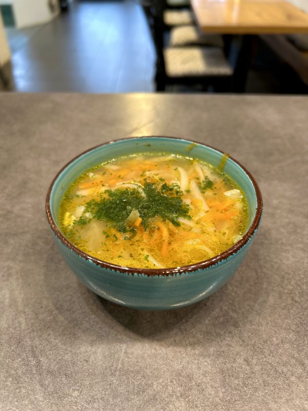 Hovězí vývar s nudlemi a játrovými knedlíčky