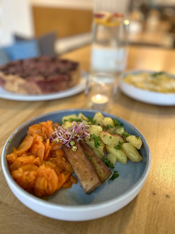 150g Přírodní vepřový kotlet s volským okem a americkými brambory