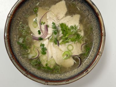 Kuřecí vývar se zeleninou, masem a kapáním