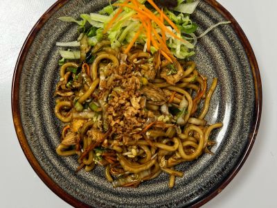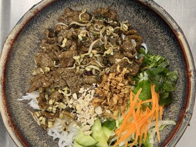 Hovězí vývar se zeleninou, masem a nudlemi/ velká 400ml/ 65, -Kč