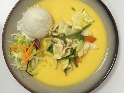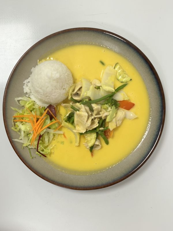 150g Vepřové nudličky se zeleninou v kari omáčce, jasmínová rýže