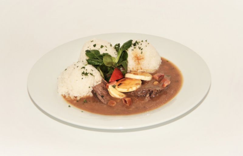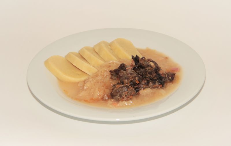 150g Moravský vepřový vrabec, dušené zelí na slanině, houskové knedlíky 137