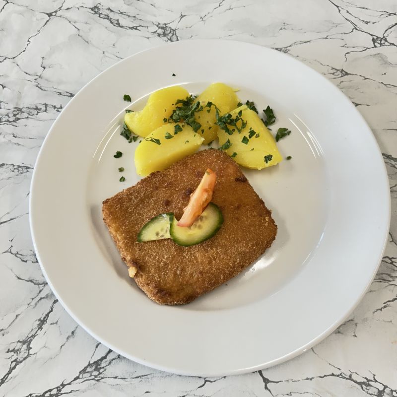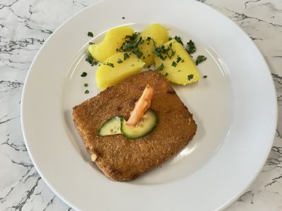 SMAŽENÝ HERMELÍN s vařeným bramborem a tatarskou omáčkou 13710
