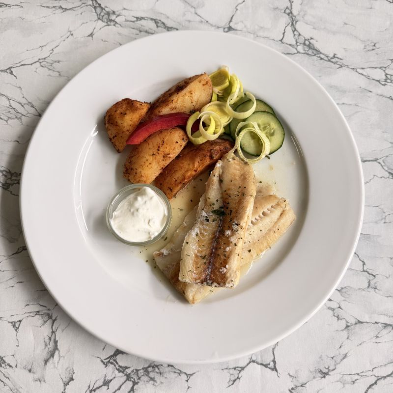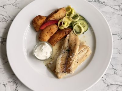 150g Smažené rybí filé, bramborová kaše