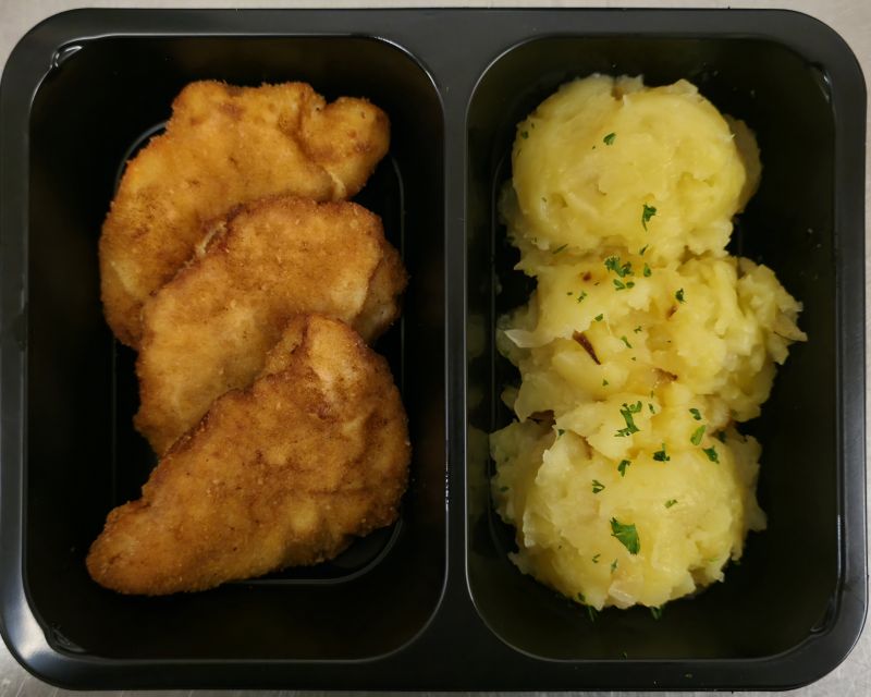 SMAŽENÝ VEPŘOVÝ ŘÍZEK provoněný česnekem se šťouchaným bramborem 137