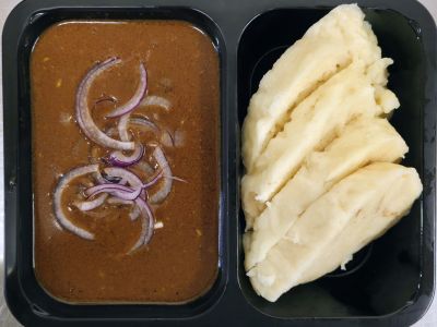 150g Veg curry 7 Zeleninová směs s kari omáčkou. PLACKA (NAAN) /RÝŽE/PŮL A PŮL