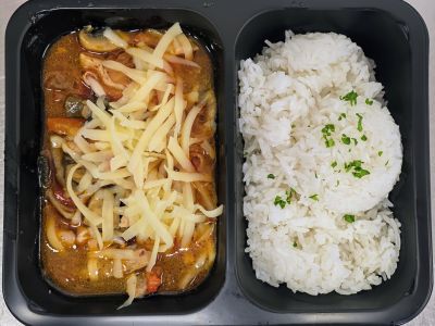 150g Kuřecí nudličky na hříbkách, jasmínová rýže
