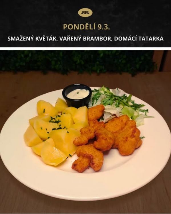 150g Smažený květák, vařený brambor, domácí tatarka 13710