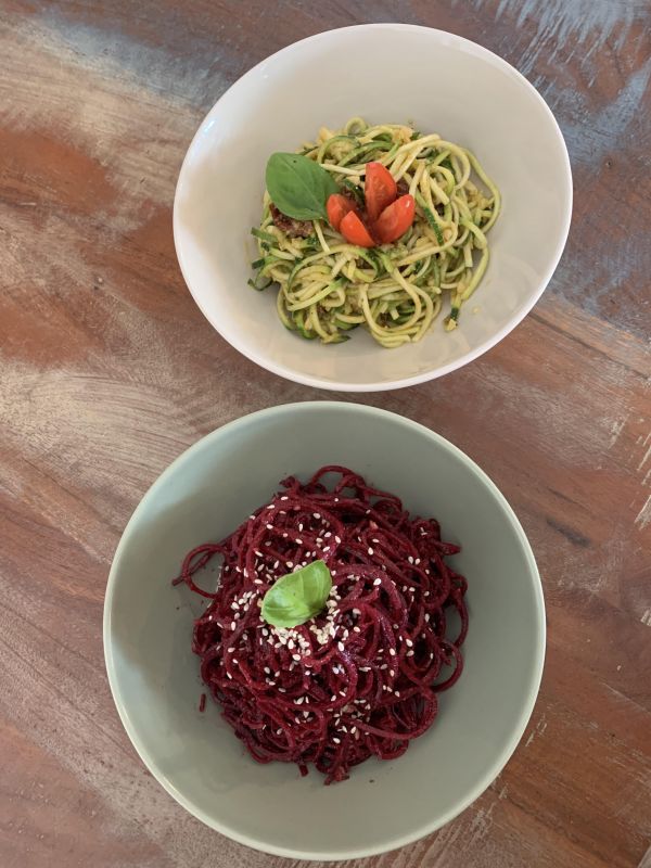 Špagety Bolognese, sýr, bazalkové pesto