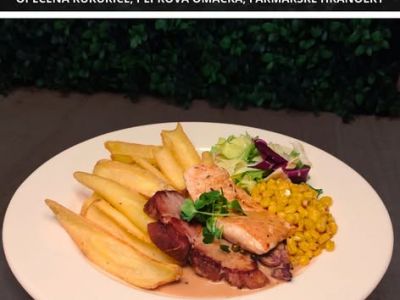 Kuřecí plátek s bylinkovou omáčkou, hranolky 7
