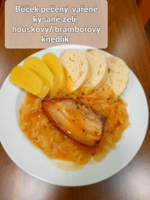 100 g Pečený bůček, houskový knedlík, zelí (1, 3, 7) * 137