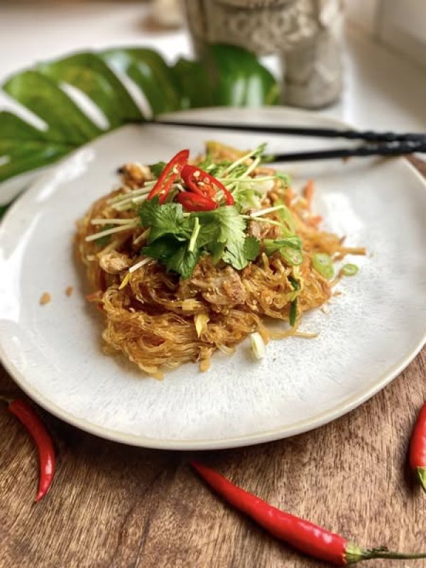 280g Těstovinový salát se 120g kuřecích prs, dip, zelenina, opečený toast