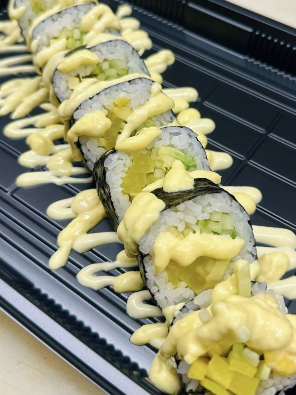 PokeBowl. Jemné plátky uzeného lososa a marinované tofu hrají hlavní roli v této svěží misce. Základ tvoří sushi rýže s wakame řasami a edamame boby. Miska je doplněna krémovým avokádem, sladkým mangem, ředkvičkou a čerstvým listovým salátkem.