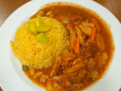 Polévka dle výběru Vepřová kýta pečená na cibuli a česneku, dušená rýže 1