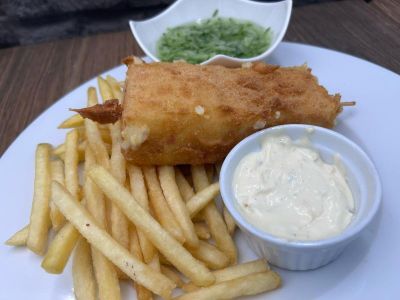 MENU 3 Polévka dle výběru 300g/150g Francouzské brambory, zelný salát /1, 3, 7/ 160/135