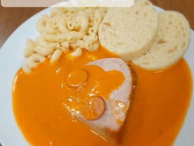 150g plíčka na smetaně, houskový knedlík, brusinkový terčík