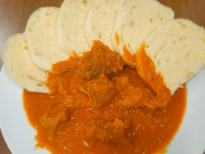 150g cikánská hovězí pečeně, houskový knedlík nebo rýže