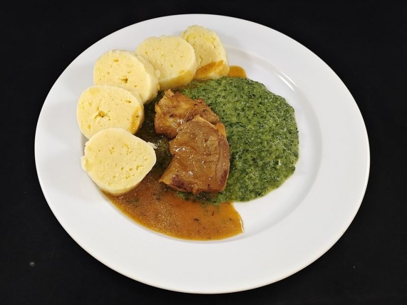 150g vepřové výpečky se špenátem a bramborovým knedlíkem 1, 7, 12