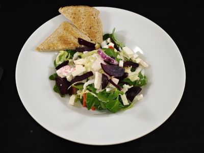 7. CHLEBA S ŘEPOU — žitný chléb, červená řepa, žervé, niva, vlašské ořechy, olivový olej