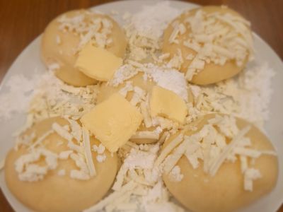 300g krupicová kaše sypaná kakaem a cukrem, přelitá máslem 1, 7