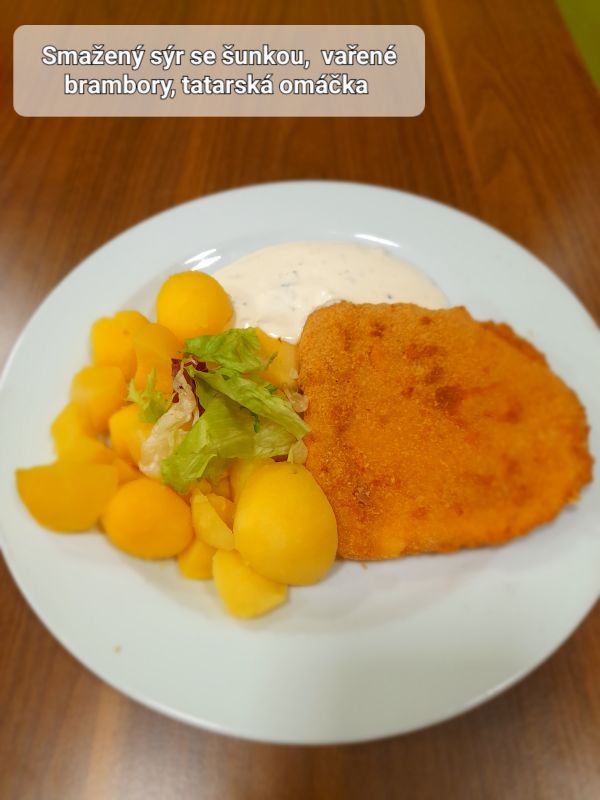 150g variace smažených sýrů, vařené brambory, tatarská omáčka