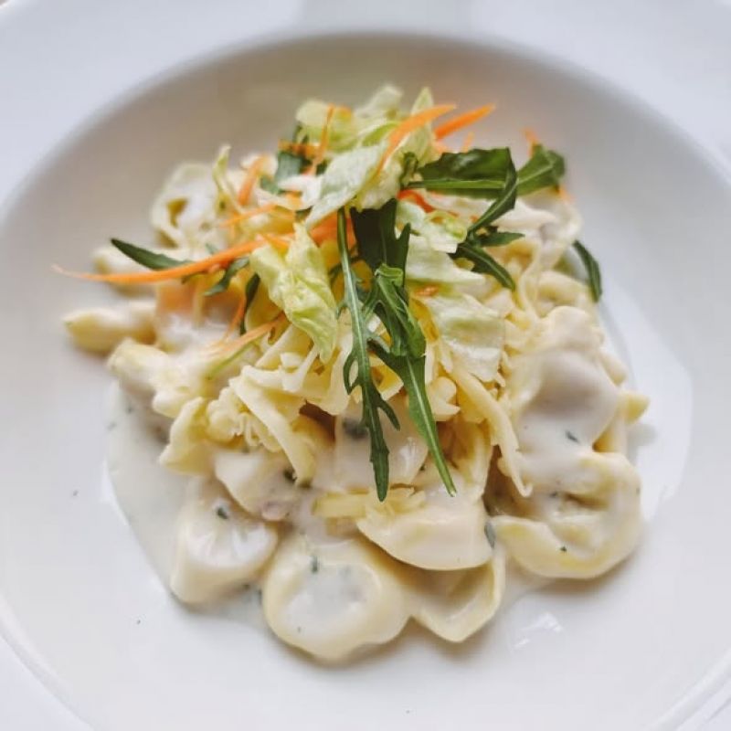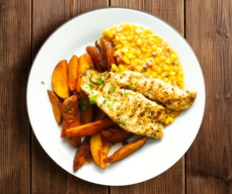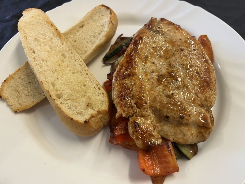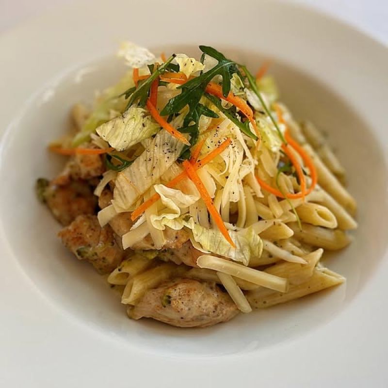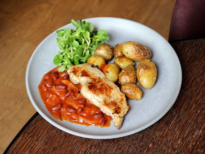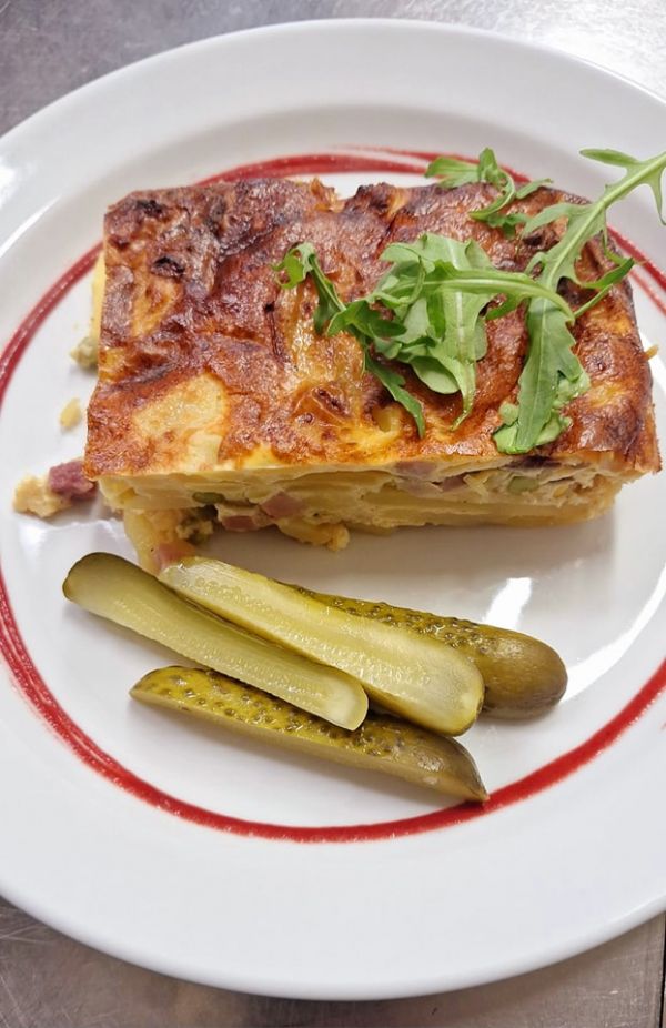 Pikantule (kuřecí prsa na nudličky, americký brambor, niva, smetana, brokolice a zapečené sýrem)