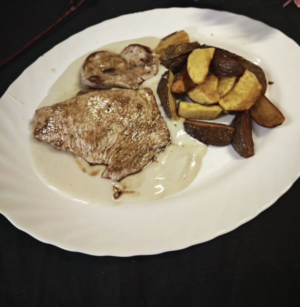 150g Grilovaný flank steak z kašavského býčka, dijonská omáčka, pečené smetanové brambory