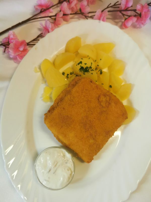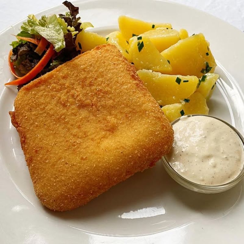 100g Smažený sýr, vařené brambory, tatarská omáčka
