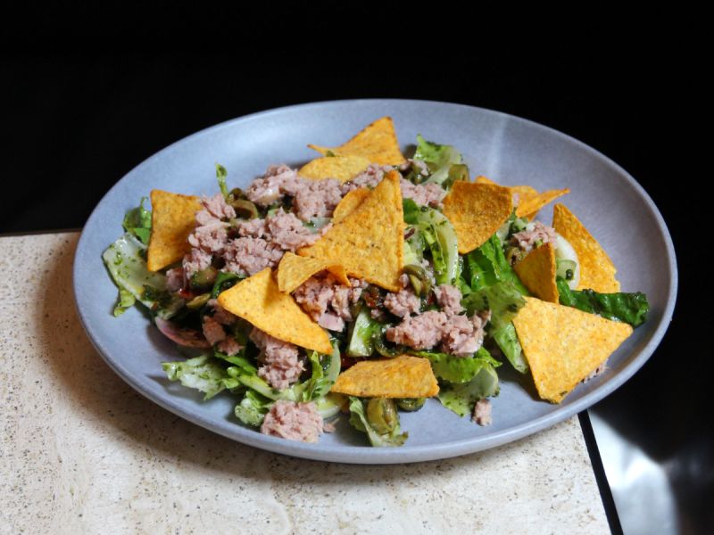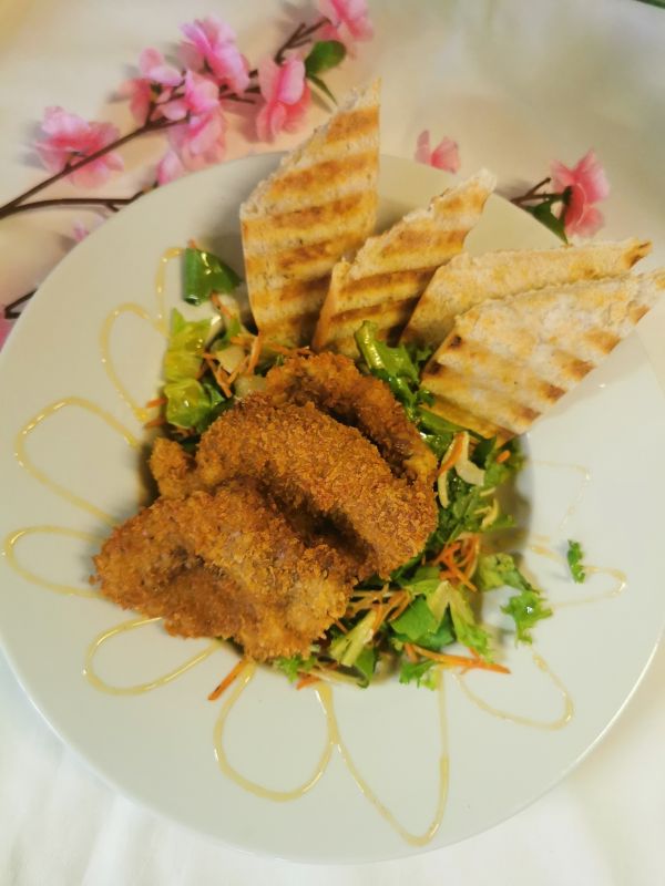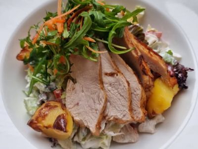 100 g Míchaný zeleninový salát, smažené kuřecí nugetky obalené ve sladkokyselé omáčce 1347910