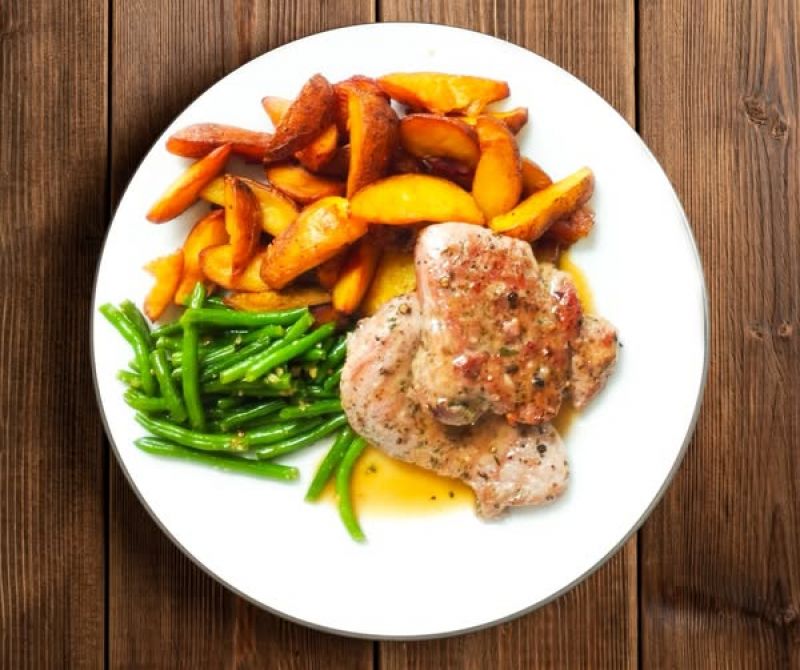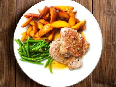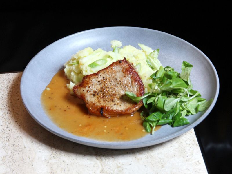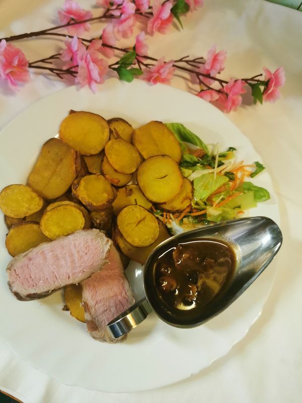 Grilovaná vepřová panenka s loveckou omáčkou, brambory Grenaille