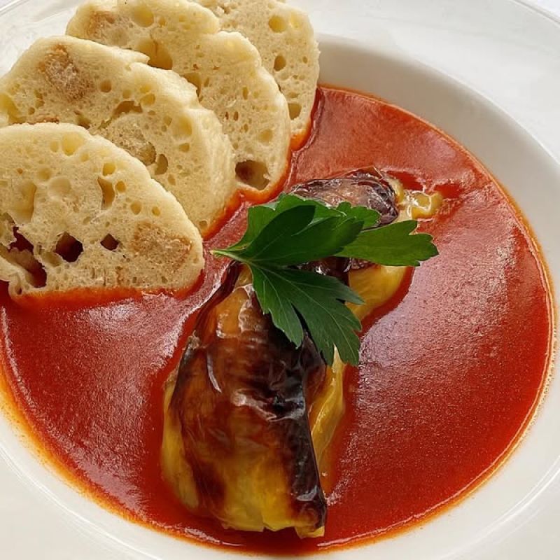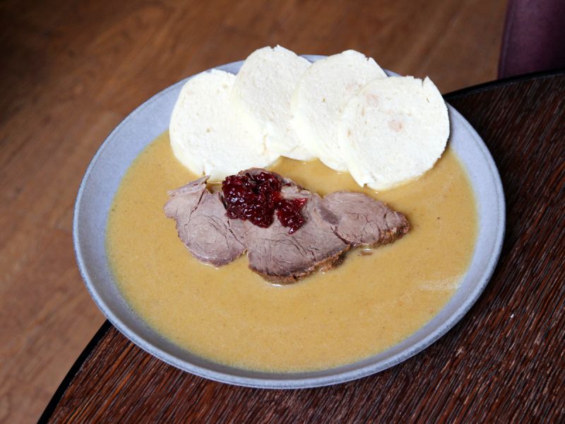 Svíčková na smetaně (vepřové) s houskovým knedlíkem 1, 3, 7, 9, 10, 12