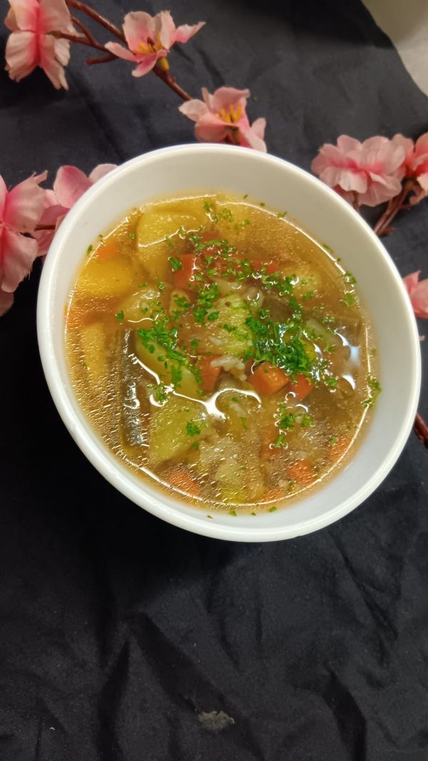 Hovězí vývar s masem a nudlemi [ 1, 3, 9]