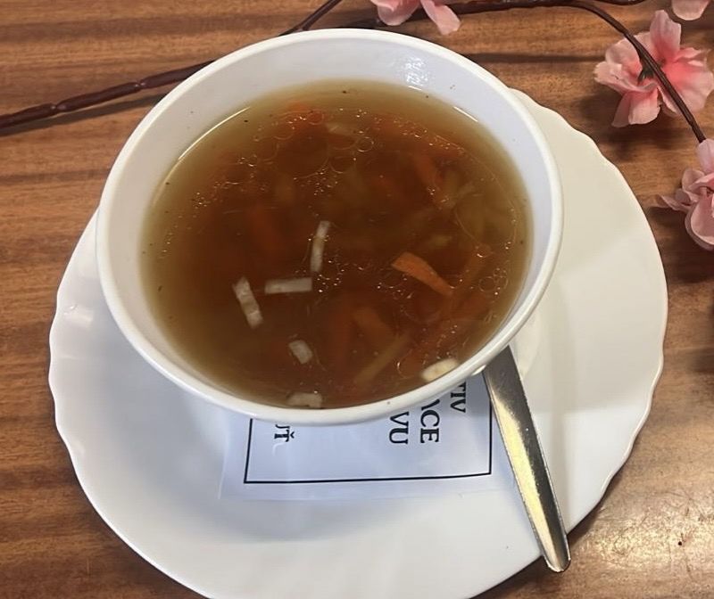 Hovězí vývar s játrovými knedlíčky, nudlemi a zeleninou