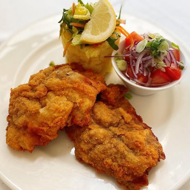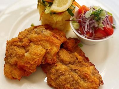 150g Holandský řízek, hranolky nebo vařené brambory, tatarka 137
