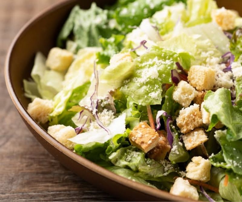 300g Zeleninový salát s marinovanou mozzarellou, bylinkový dresink, bagetka s bazalkovým pestem 137