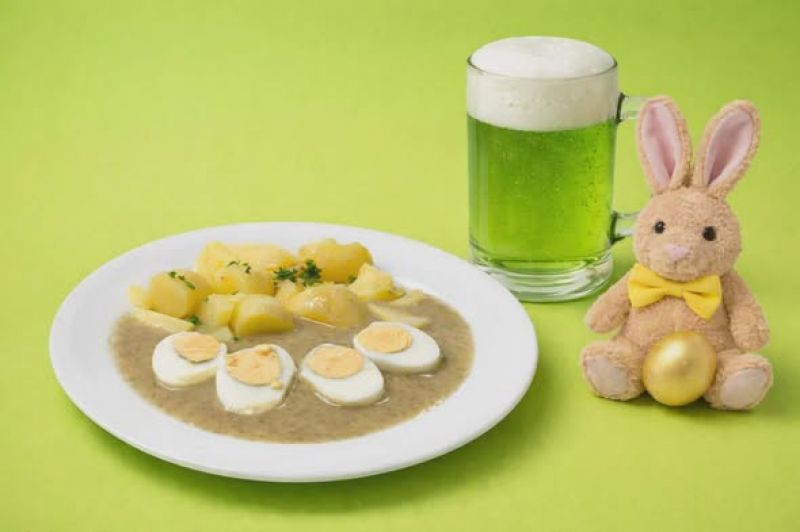 Čočka na kyselo, sázená vejce, okurek, chléb
