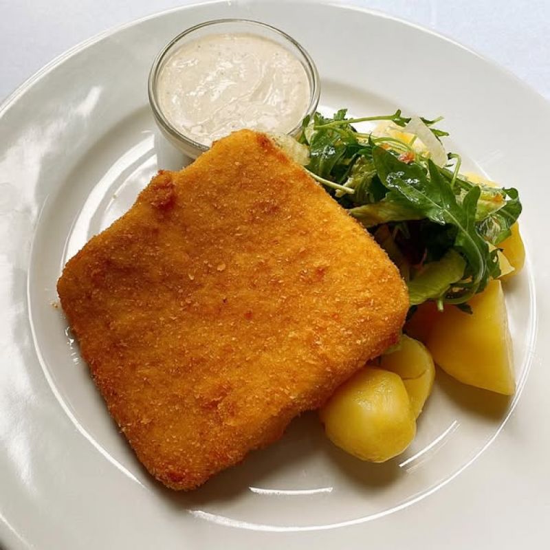 Smažený eidam, hranolky/vařené brambory, domácí tatarská omáčka