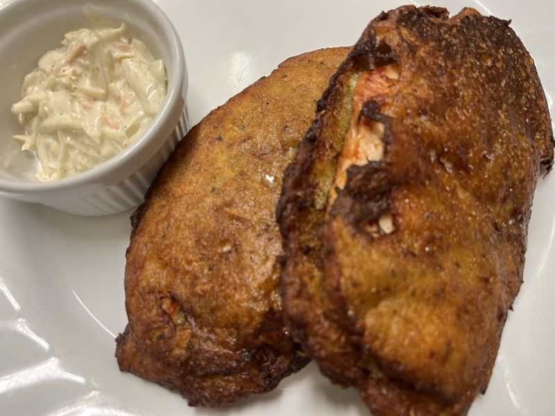 Smažený kuřecí Cordon Bleu, vařené brambory, domácí tatarská omáčka