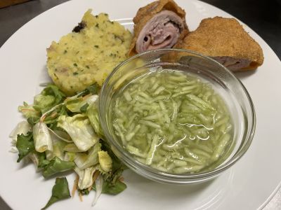 Cordon Bleu, šunka, ementál, bramborový salát s majonézou