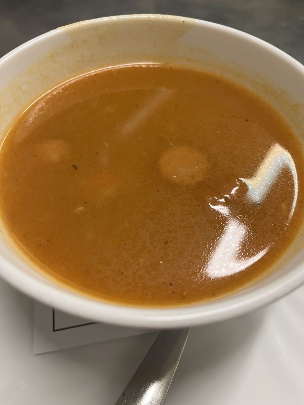 Polévka: Uzený vývar s kroupami a zeleninou - v ceně menu