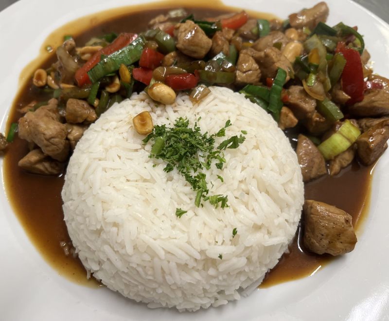 150 g Kuřecí steak s paprikovou omáčkou a jasmínovou rýží