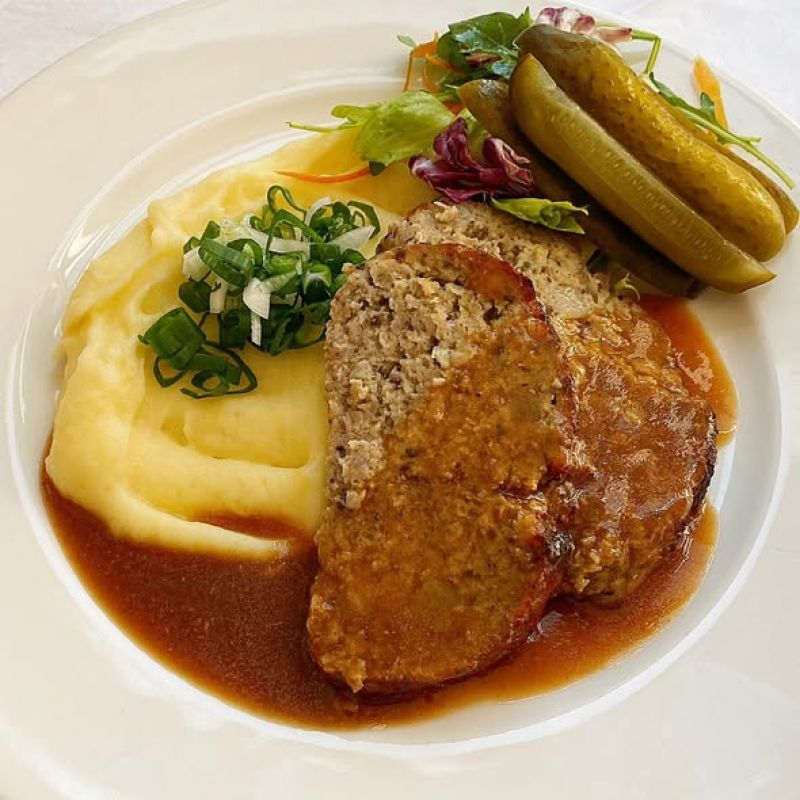 Hovězí maso, smetanová houbová omáčka, houskový knedlík (1,3,7)