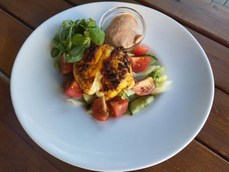 Kuřecí salát (300g - zelenina, kousky kuřecího masa, dresing a pizzabrot)