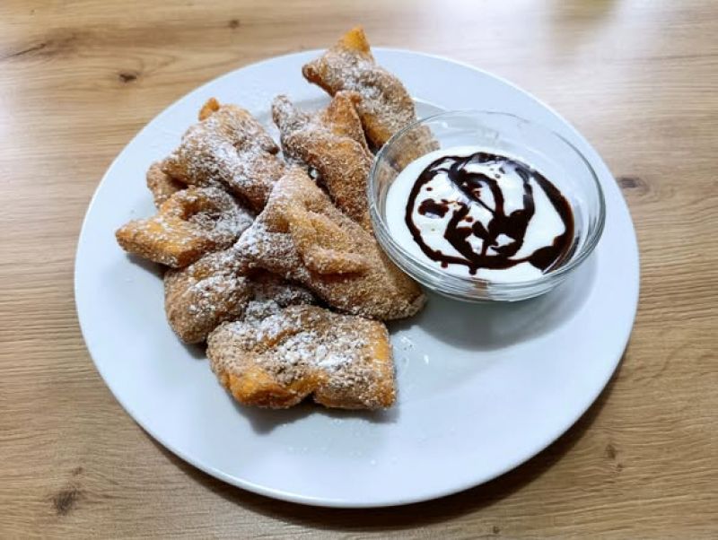 Lívanečky s ovocným přelivem sypané cukrem