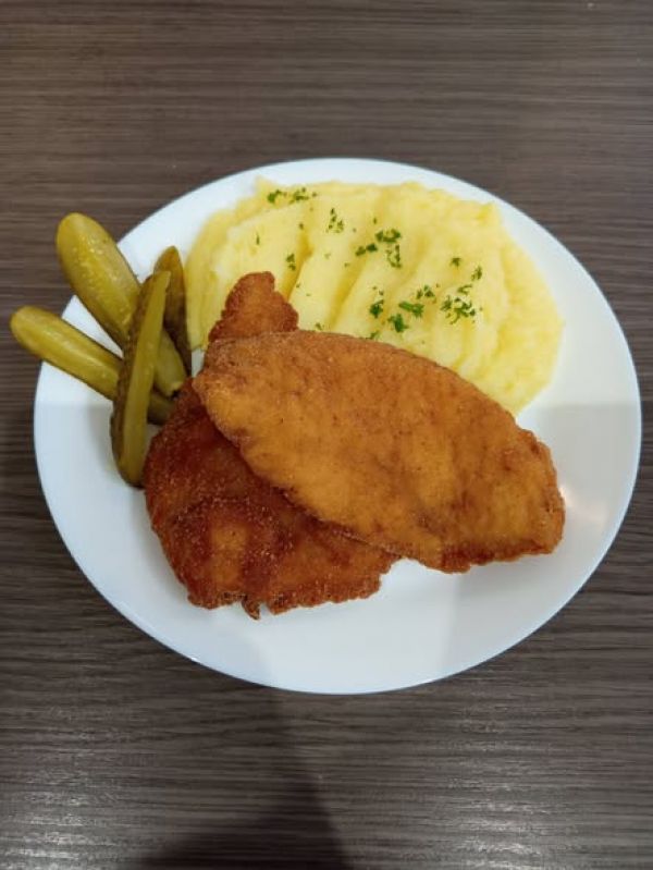 250g Kuřecí/Vepřový řízek s bram. salátem nebo kaší