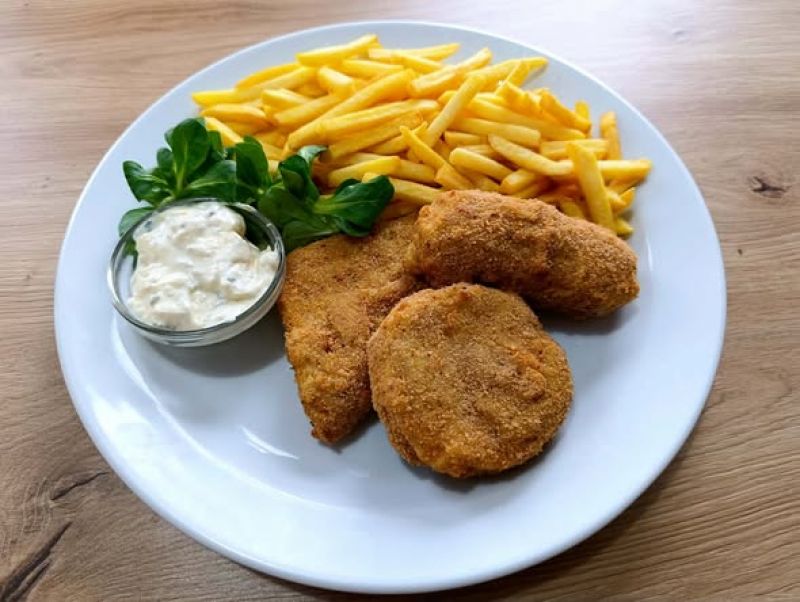 Smažený sýr Eidam s hranolky a tatarskou omáčkou