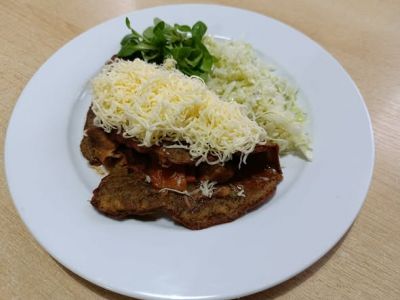 250g Kuřecí/Vepřový řízek s bram. salátem nebo kaší