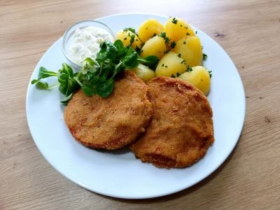 Řízek z vepřové krkovičky (150g) s bramborovým salátem